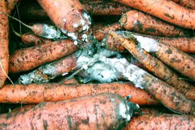 Болезнь может проявляться уже на всходах, когда на них появляются бурые перетяжки и всходы погибают. Основной вред растениям болезнь наносит в период формирования корнеплодов. На листьях появляются многочисленные коричневые пятна с темным ободком, листья закручиваются и приобретают вид обваренных. На черешках листьев пятна бурые, немного вдавленные, удлиненной формы. С листьев болезнь распространяется на корнеплоды, вызывая появление небольших светло-коричневых пятен диаметром до 1,5 см. Корнеплоды загнивают и не хранятся в зимний период. Инфекция сохраняется в растительных остатках, в корнеплодах и семенах. Зараженные семена в большинстве случаев и являются причиной этой болезни моркови.