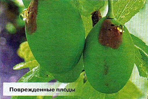 Поэтому чтобы хоть отчасти удовлетворить чувство мести за испорченные плоды, сначала осторожно подставьте ладонь под плод с казаркой, затем сделайте движение в ее сторону, заметное для нее, — и «дичь» в вашей ладони. Или подстелив белую пленку под дерево, крепко встряхните его либо опрыскайте крупными каплями чистой воды. Казарки через несколько секунд окажутся на пленке. Ну а уже опавшие плоды с личинками внутри надо регулярно собирать и поглубже закапывать осенью.